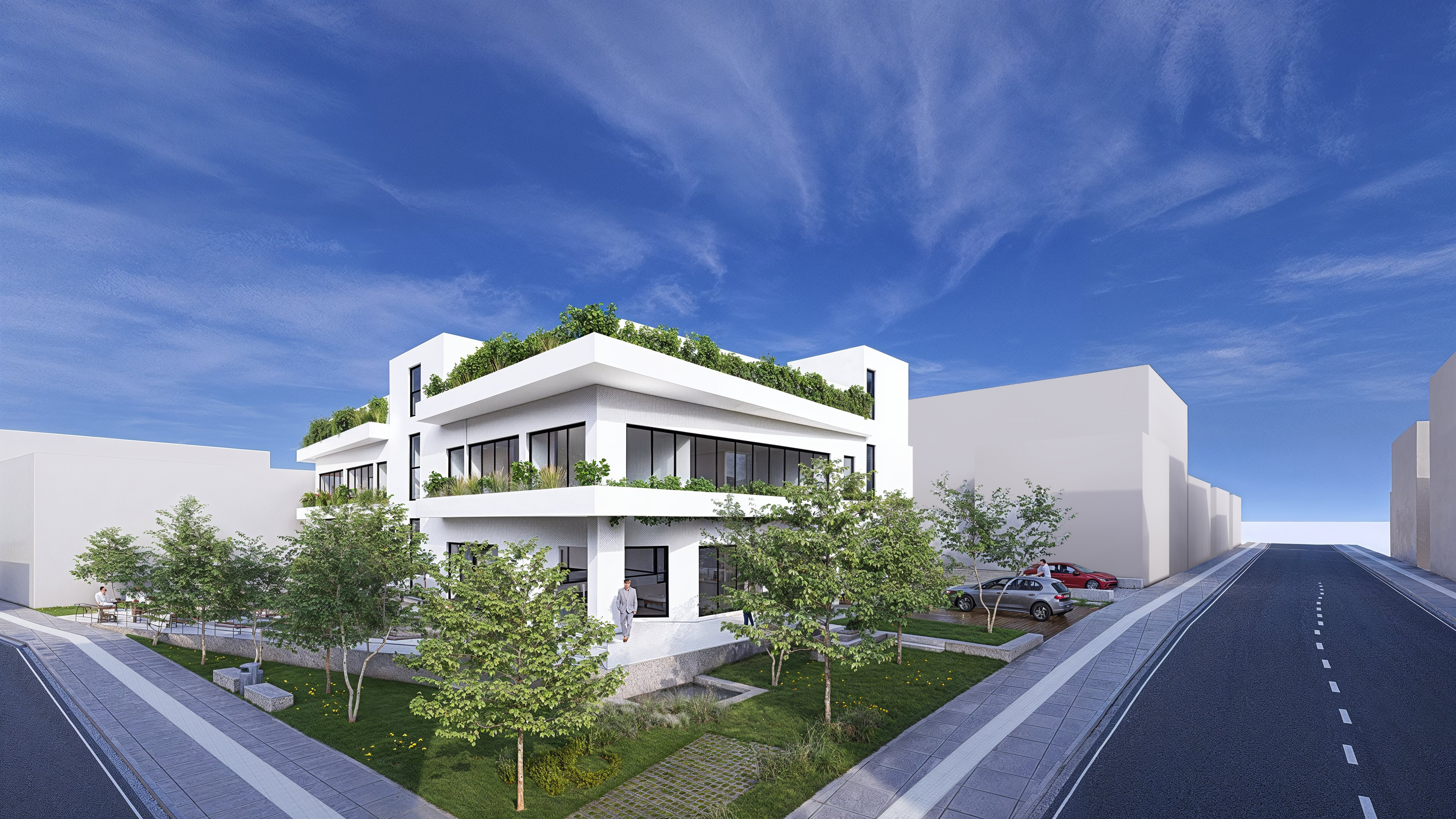 Μελέτη και κατασκευή κτιρίου που θα αποτελείται από δύο ορόφους με χρήση γραφείων/ εκθεσιακών χώρων, από έναν υπόγειο όροφο που θα περιλαμβάνει αίθουσα εκδηλώσεων-θεατρικών παραστάσεων, και άλλους τρεις υπόγειους ορόφους με χρήση θέσεων στάθμευσης.