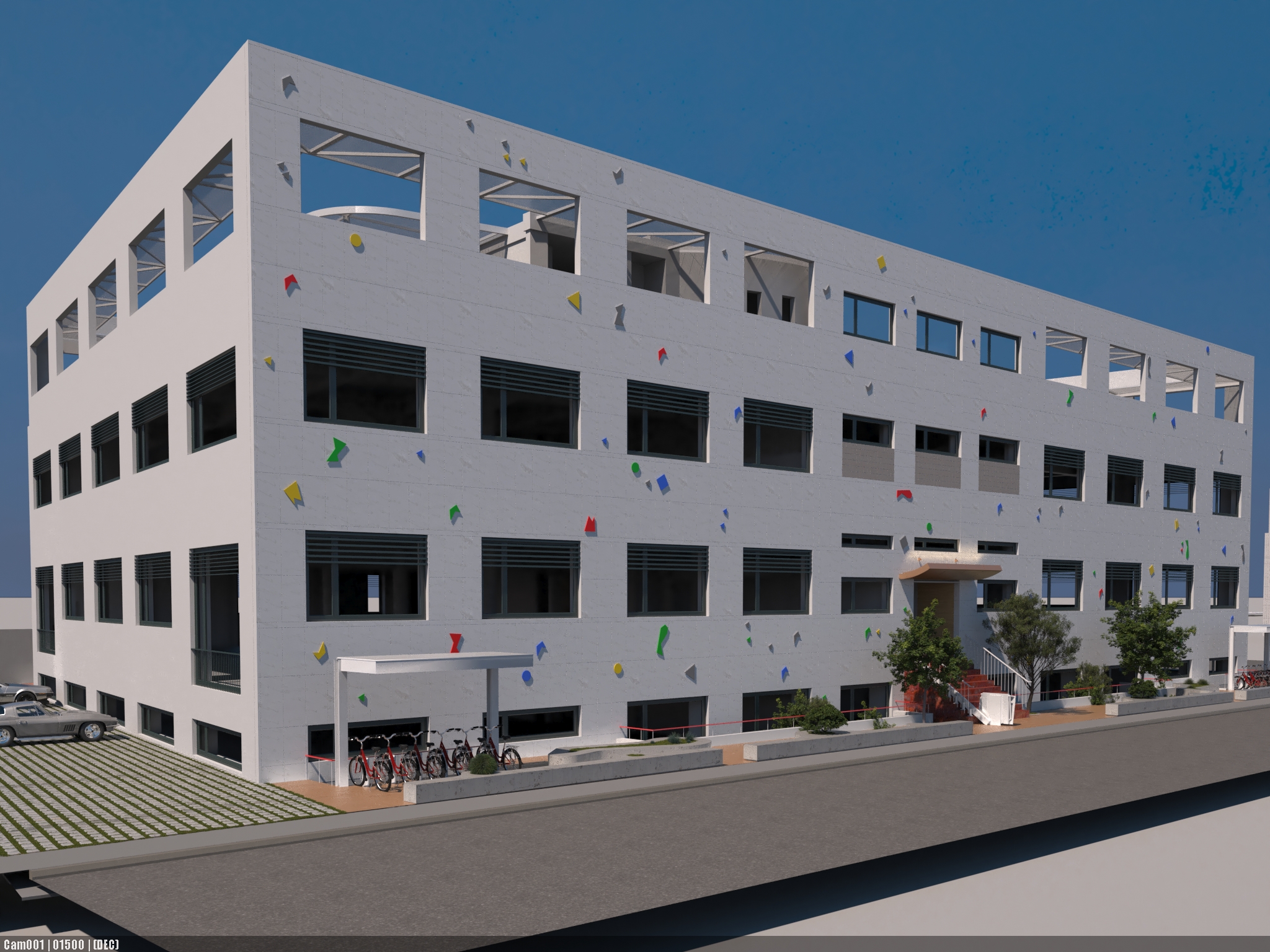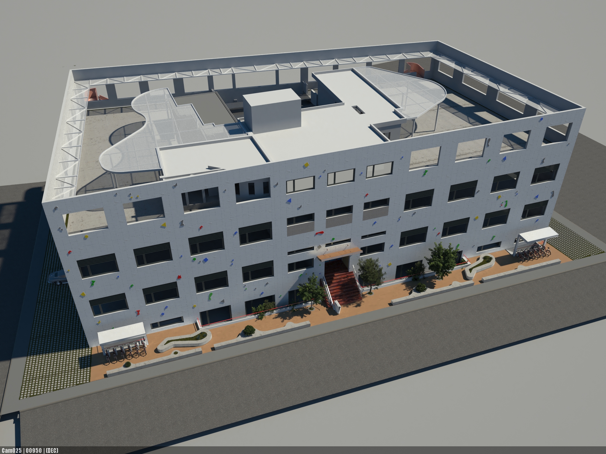 Αλλαγή χρήσης κτιρίου εκπαίδευσης σε κτίριο γραφείων, τροποποίηση παταριών, τροποποίηση θέσεων στάθμευσης, προσθήκη πέργκολας στον ακάλυπτο και το δώμα, τροποποίηση του περιμετρικού στηθαίου και κλείσιμο στεγασμένων βεραντών στο δώμα.